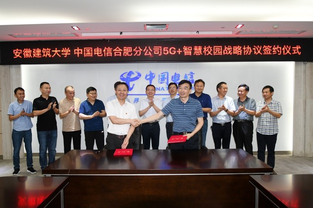 孙道胜校长对合肥电信公司的邀请表示感谢,强调建大的发展离不开企业的支持,希望合肥电信发挥在5G通信领域的技术优势,加强对我校基础网络的保障,在解决校园信息化平台整合方面加强互动合作。