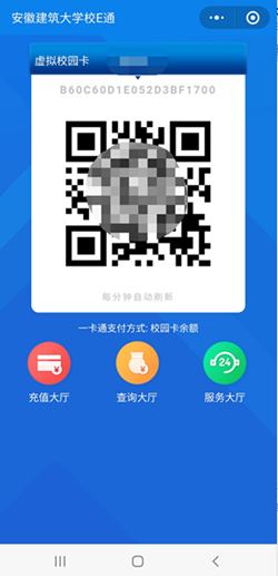 微信电子校园卡内提供一卡通的各种查询、挂失、电费充值、一卡通微信充值等自助服务功能。同时微信电子校园卡首页具有微信电子校园卡二维码,该二维码可在校内食堂超市的终端POS前出示完成消费支付或身份认证功能。个人信息账户余额等与实体校园卡均完全共享。