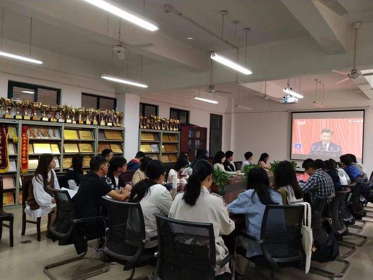 校团委组织学生团员、团干、学生干部和代表等在校学生在南区大学生活动中心报告厅、北区图书馆报告厅集中收听收看。