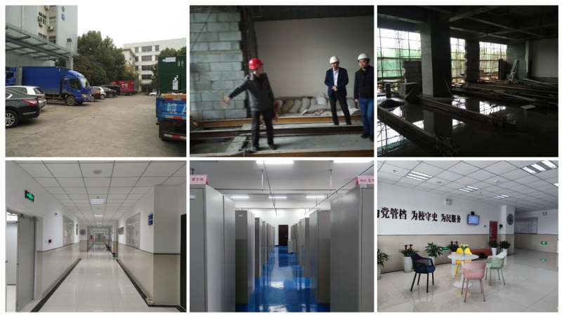 学校于19922月成立综合档案室,科级建制,隶属原学校办公室。此后二十年间,数次谋划建馆事宜,20171月学校适时建馆,原综合档案室及工作人员整体归并。建馆之初,馆址位于北区行政楼五层,总面积160㎡,其中库房面积约122㎡。新馆落成后,201711月安全稳妥完成整体搬迁,迁至南区实验综合楼二楼、三楼,面积约1100㎡,其中库房面积约750㎡。新馆严格执行“四分开”,办公用房、整理用房、阅览用房和档案库房等各类档案用房设置合理。建筑设计符合《档案馆建设标准》(建标1032008)、《档案馆建筑设计规范》(JGJ252010)等标准规范要求。档案库房选用以高压细水雾为介质的灭火装置,安装全封闭防盗门窗、遮光阻燃窗帘、安防摄像头等防护设施,配备空调系统、除湿机、温湿度记录仪等监测调控设施设备。更新老旧档案装具,分批配备五节柜、财务凭证柜、实物柜、光盘柜、防磁柜、保密柜等237组。设置独立保密库房。确立档案馆徽标及文字标识设计,开展制度上墙、法律法规宣传、文化氛围营造,设置查档等候区,馆库内部及外围环境持续优化。