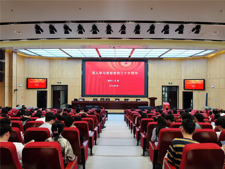戴前宏围绕深刻领会党的二十大的重大意义、准确把握党的二十大精神实质和迅速兴起学习宣传贯彻党的二十大精神的热潮等三个方面,聚焦党的二十大的主题、过去5年的工作和新时代10年的伟大变革、马克思主义中国化时代化、中国式现代化、全面建设社会主义现代化国家的目标任务、坚持党的全面领导和全面从严治党等重点内容,并结合学校发展实际,对党的二十大精神进行了系统阐释和深入解读。