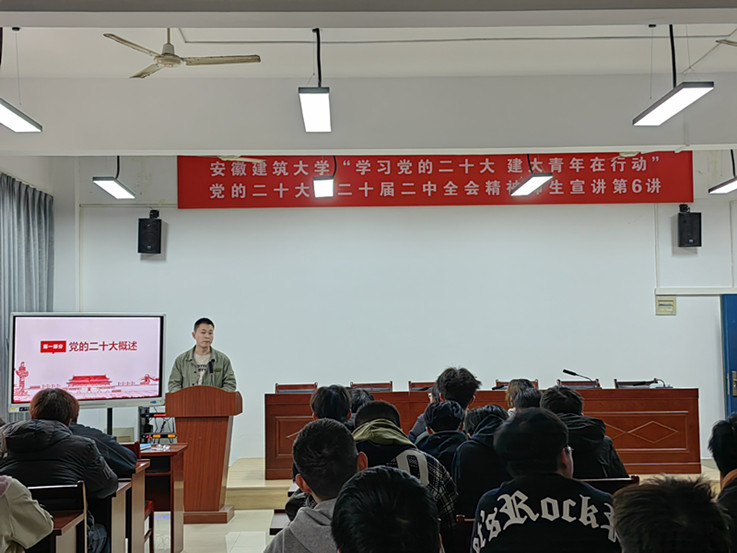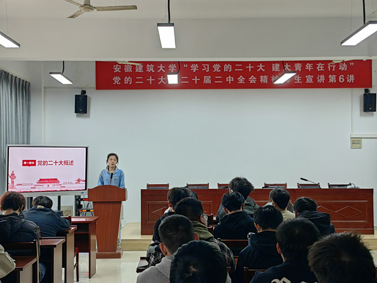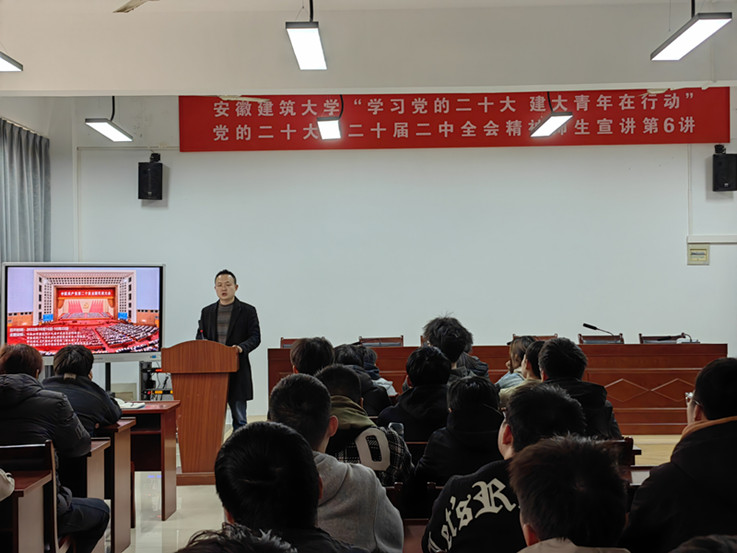 本网讯  326日,“学习党的二十大,建大青年在行动”党的二十大、二十届二中全会精神师生宣讲团走进机械与电气工程学院。机械与电气工程学院、环境与能源工程学院辅导员,学生代表、思政委员等100余人参加宣讲会。