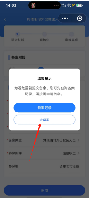 目前省级平台“安徽医保公共服务”中“其他临时外出就医人员”备案申请提交后由系统自动即时审核,无需人工审核,效率更高,且跨省住院直接结算时需校验存在本人异地就医备案,所以现提出以下温馨提示: