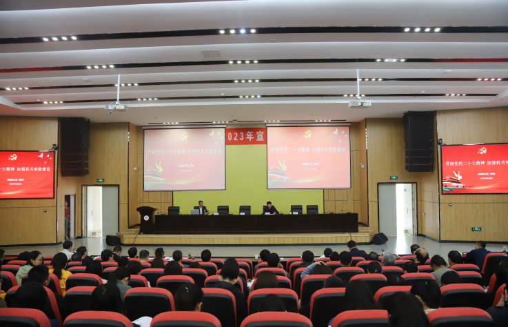改进学校党政机关工作作风建设,提高工作效能,结合学习习近平新时代中国特色社会主义思想主题教育4月28上午,机关第一、二党委实验综合楼二楼报告厅召开了机关效能建设辅导报告会。省直效能办二级巡视员王传所应邀来校作题为贯彻党的二十大精神加强机关效能建设”辅导报告机关第一党委全体党员干部、机关第二党委科级以上干部200余人参加报告会,报告会校党委常委、副校长张亚新主持。