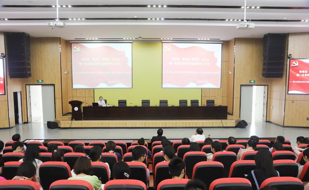 本网讯  6月7日下午,作为联系机关第一党委的校领导、校党委书记孙道胜以“听党话、跟党走、学思想、见行动”为题南校区实验综合楼二楼报告厅为机关第一党委青年党员干部一百余人上专题党课。