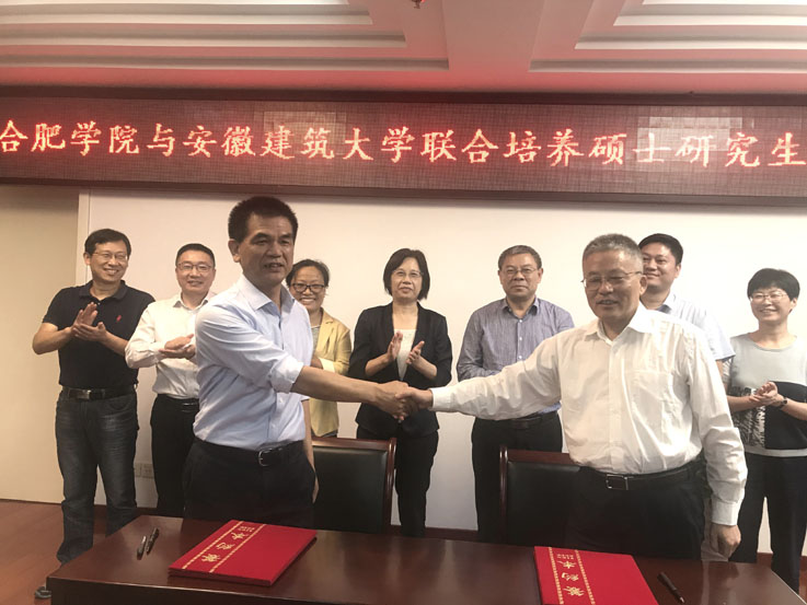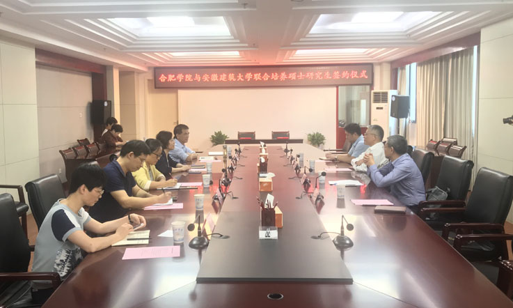 本网讯 9月27日下午,副校长丁克伟、研究生院院长雷庆关等一行四人赴合肥学院签订研究生联合培养协议。合肥学院校长吴春梅、副校长卢平以及相关部门领导接待了丁克伟一行,签约仪式由卢平主持。