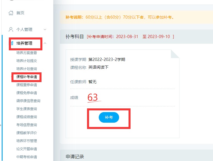 根据研究生院学期工作安排,2023-2024学年第一学期全日制硕士研究生期初补考安排如下,请各位需要补考的研究生,首先在研究生教育管理申请补考,未在系统申请补考的学生,无补考成绩。重修课程为本学期能开设的课程,请在3月3号前在系统里申请,具体补考、重修申请如下: