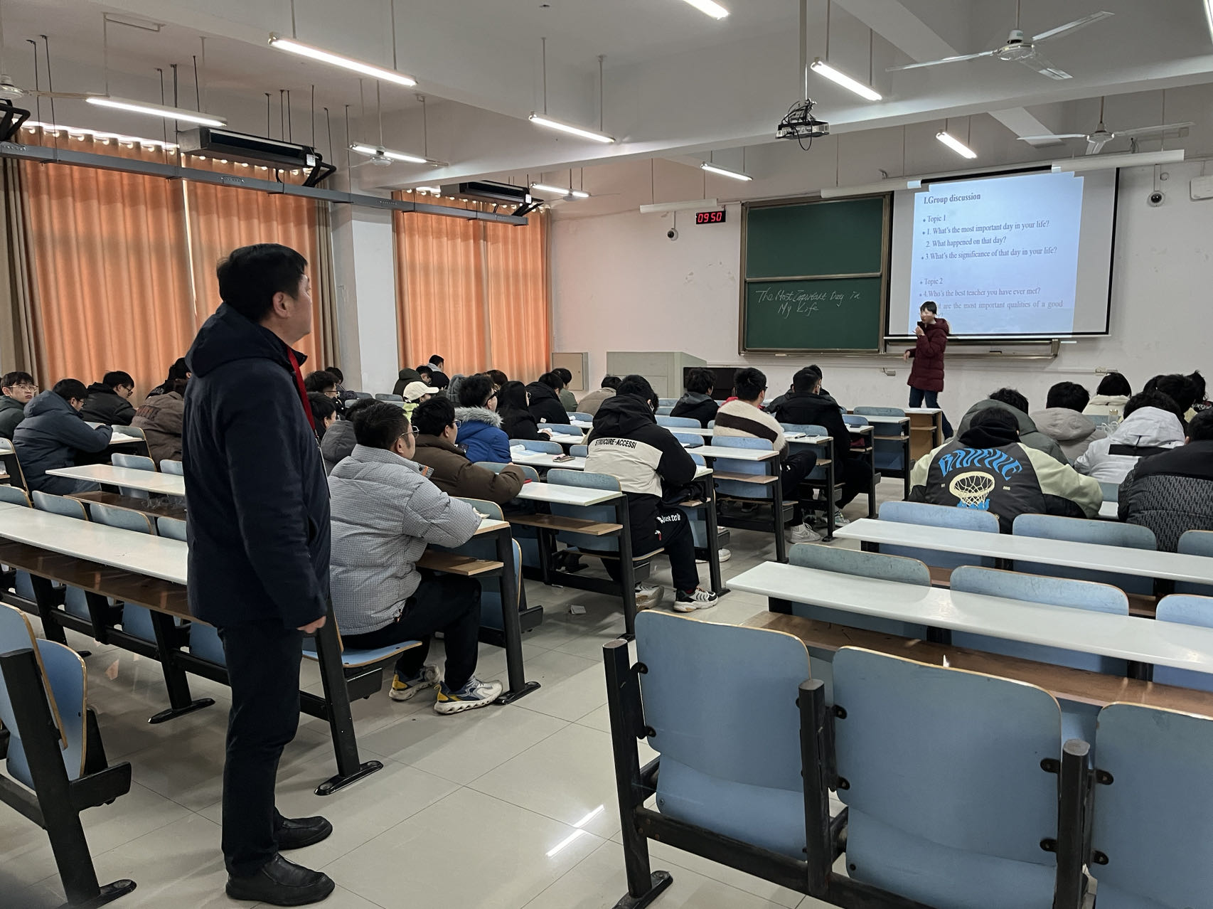 研究生院副院长黄凯及相关工作人员重点巡查了课堂秩序、教学环节、教学内容手段、学生的参与度、师生互动情况以及教学效果等。开学第一天,研究生整体教学运行情况良好、秩序稳定。任课教师准时到岗、准备充分,授课内容详实;学生按时到课,思维活跃,课堂秩序规范。