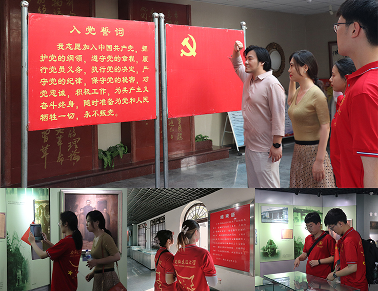 在王稼祥故居,参加实践的教师党员和学生党员同志们怀着无比崇敬的心情重温入党誓词,牢记入党初心。团队参观了故居历史资料,瞻仰革命先驱的光荣事迹,认真感悟先烈们用生命留下的永不磨灭的“红色基因”。“初心易得,始终难守”,习近平总书记在庆祝中国共产党成立100周年大会上的讲话中多次强调的这句话,让我们抱持着对革命初心的景仰与对坚守使命的信念,在红色精神中体会历史、展望未来。