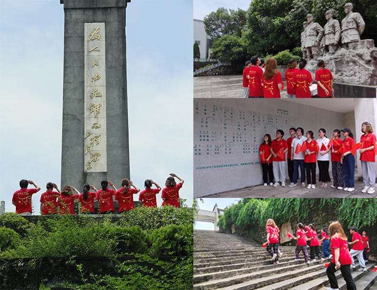 在“昔时铁军斗志强,今日青年多传唱”方面,团队首先前往泾县云岭新四军军部旧址、皖南事变烈士陵园及皖南事变标志物广场进行实地参观,向烈士纪念碑及英雄雕塑致敬,重唱革命歌曲,接受新四军“铁军精神”的洗礼。青山埋忠骨,精神育后人。纵然沧海桑田,烈士浩气长存。在这块红色的土地上,无数革命先辈出生入死,浴血奋战,谱写了一曲曲壮丽的战斗诗篇。同学们缅怀革命烈士,用革命精神为自己注入奋斗的勇气与毅力,得到了思想上的升华。
