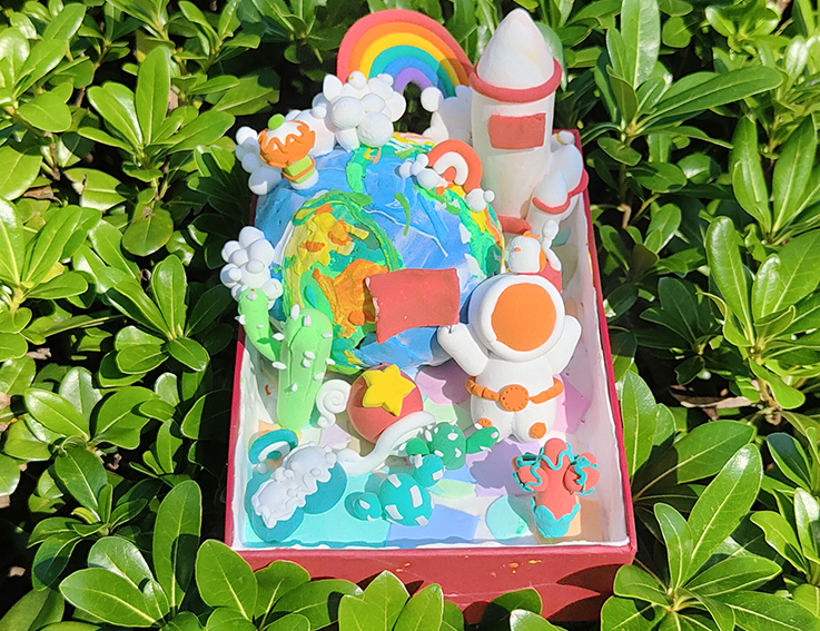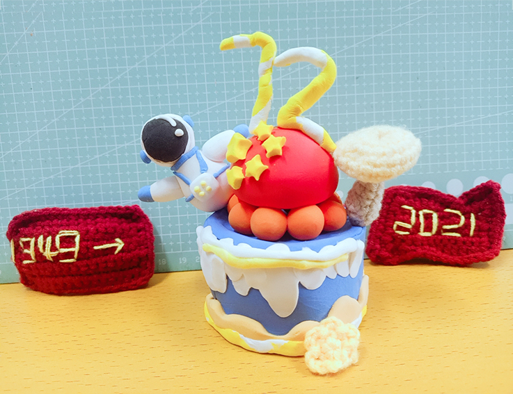 艺术学院同学围绕国庆主题,以黏土、毛线、绒布等材料为基础,将真诚的爱国热情与拳拳赤子之心融入手工作品的创作之中,以组合拼贴、平面浮雕等多元化的艺术表现手法,在方寸之间浓缩举国欢庆的盛况,在掌中天地里展现中华盛世的大好河山,抒发青年学子们胸中的“中国情”。