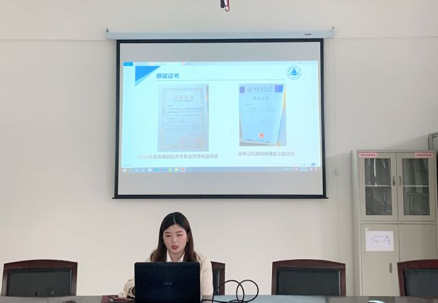 此次申请国家奖学金的研究生依次从学业成绩、综合素质、科研成果、创新实践等四个方面,结合演示幻灯片进行汇报。评委老师们根据学生的答辩情况提出相关问题并打分,最终推荐2020-2021学年艺术学院国家奖学金获得者为2020级毛蕾并公示。(图/文:王艳;审核:邢瑜)