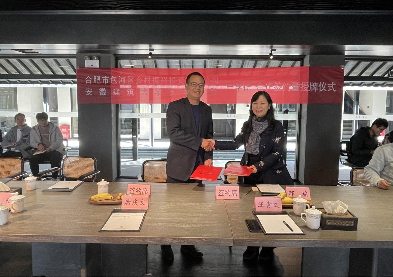 本网讯 11月11日,艺术学院与合肥市包河区乡村振兴投资有限公司在圩美磨滩民宿举行“产学研”合作签约暨教学实习基地授牌仪式。学院副院长邢瑜、各专业系、教研室负责人等与包河区乡村振兴公司总经理汪青文、副总经理沈涛等出席签约仪式。