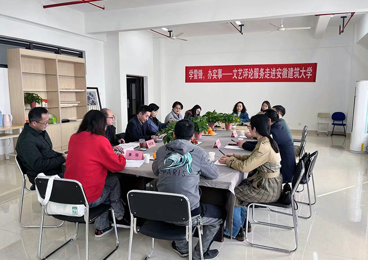 安徽省文艺理论研究室主任、安徽省文艺评论家协会副主席史培刚,安徽省文艺评论家协会副主席兼美术评论委员会主任、安徽美术出版社副总编、安徽省教育委员会书法教育专业委员会副秘书长秦金根、安徽文艺理论研究室助理研究员范倩倩等专家到访交流校。校督导员成祖德教授、艺术学院领导班子、非物质文化遗产保护传承团队成员等出席本次活动。