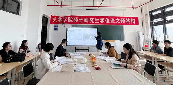 本网讯 3月4日全天,艺术学院2019级艺术硕士专业学位研究生学位论文预答辩工作顺利完成。此次预答辩工作由学院统一布置,按照研究方向分三组进行。本次预答辩特邀合肥工业大学、安徽大学、安徽农业大学、合肥学院、合肥师范学院和建筑与规划学院8位教授担任答辩委员会委员,2019级全体研究生参加预答辩,2020级研究生、2021级研究生、研究生导师旁听。