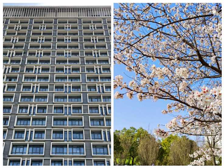 老师们的拍摄风格多样、构图精巧,不仅有光影错落的教学楼、易海蓝天,也有明艳动人的花朵,展现出南校区春天里的蓬勃生机。