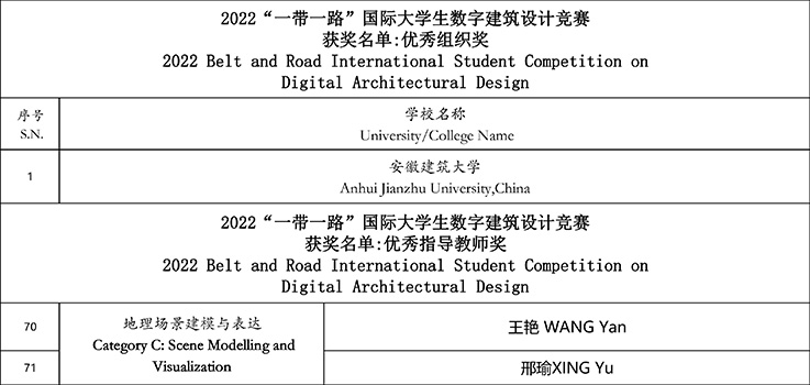 2022“一带一路”国际大学生数字建筑设计竞赛由来自11个国家的45所高校、650余名师生参与,竞赛于2022年3月启动,涵盖建筑设计、结构设计、地理场景建模与表达3个方向,经过三年的探索与发展,“一带一路”国际大学生数字建筑设计竞赛的影响力、知名度、专业权威性及参与率与日俱增,已成为国际大学生之间的学术和文化交流盛会。