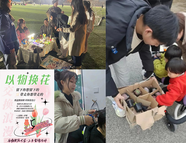 同学们在社区、街头义务理发、用绿植换取可回收物品、开展义卖活动,用自己的善意行为,把雷锋精神真正的融入到日常生活中。