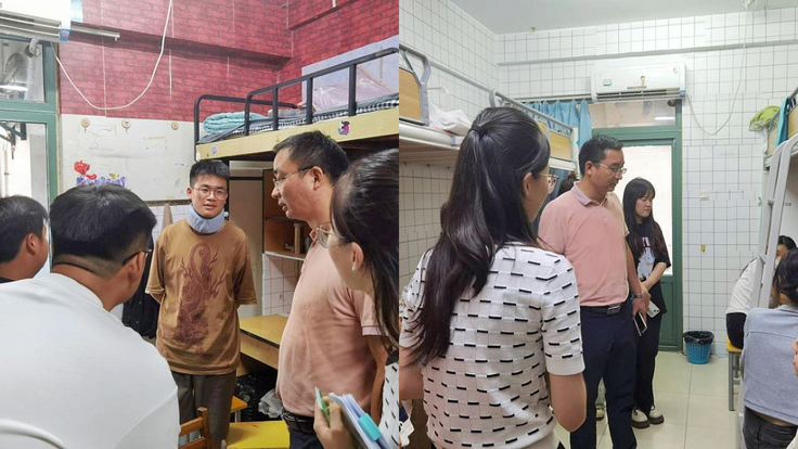 7日晚,艺术学院党委副书记任磊和2023级新生辅导员党秋晨老师来到新生寝室,与新生们暖心交流,亲切问候了同学们是否安顿好,及时了解了学生需求,言辞与行动尽显关心与爱护。