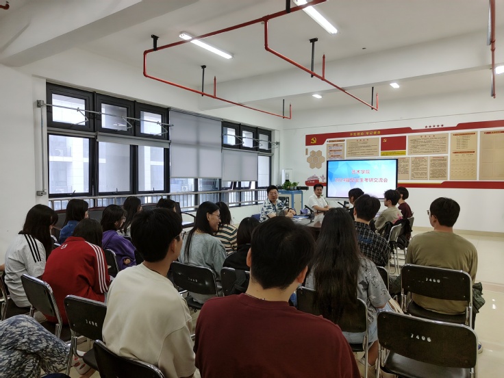 本网讯 近日,艺术学院邀请环境设计系邵国良老师、视觉传达系谷宗州老师、动画系范骏老师及学院部分已考取研究生的2019级毕业生,共同为艺术学院20级、21级准备参加研究生考试的同学传授考研经验。