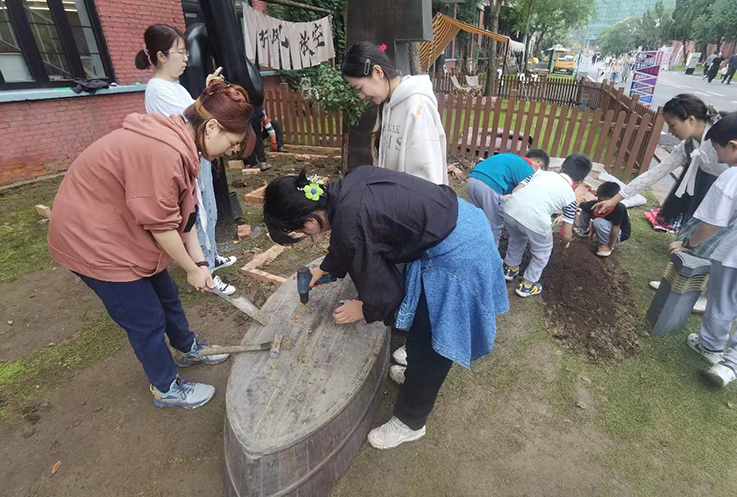 本网讯 9月28日,由我校艺术学院师生组成的“徽匠园丁”社区花园设计小组,在暑期社会实践中开展社区花园系列共创活动的基础上,将图纸转化为现实,为合柴1972文创园增添了一处网红打卡点。