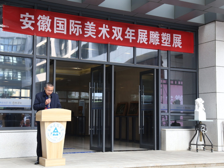 艺术学院1995级环艺专业校友、淮北市刘开渠纪念馆馆长、安徽省雕塑协会副会长刘开辉先生,向母校捐赠汉白玉雕塑作品《蜕变》,该作品荣获2023中国石雕艺术精品展一等奖。闵杰副校长颁发作品收藏证书。