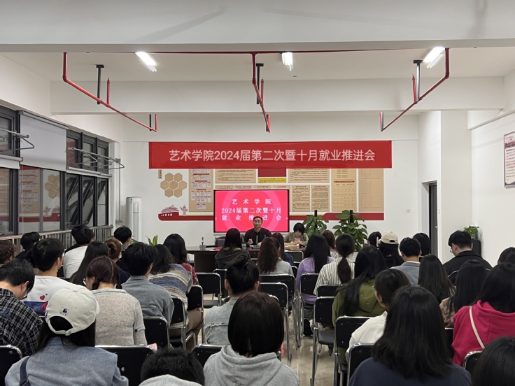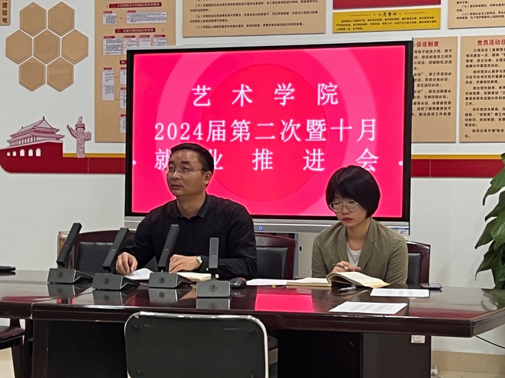 本网讯 为扎实推进毕业生就业工作,了解毕业生思想动态, 加强与毕业生之间的沟通交流,10月12日,艺术学院党委副书记任磊、毕业班辅导员袁婧卓组织毕业班学生骨干召开艺术学院2024届毕业生第二次就业推进会。
