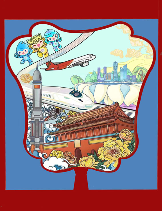 21环境设计2班的刘泽鑫同学利用巧妙的构图,描绘了中国共产党团结带领中国人民奋进新征程的宏伟蓝图,体现了中华民族强大的生命力、创造力和凝聚力,表达了对中国未来发展前景的美好期望。