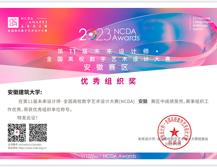 在第11未来设计师.全国高校数字艺术设计大赛”(NCDA)的参赛过程中,艺术学院团队不仅取得了优异成绩。还获得“省级优秀组织单位”荣誉称号。本届大赛共有1826所高校参赛,共征集约30件。我校在省级赛中获一等奖38项,二等奖44项,三等奖65项。在全国总决赛中,荣获全国总决赛一等奖5项,二等奖7项,三等奖9项。