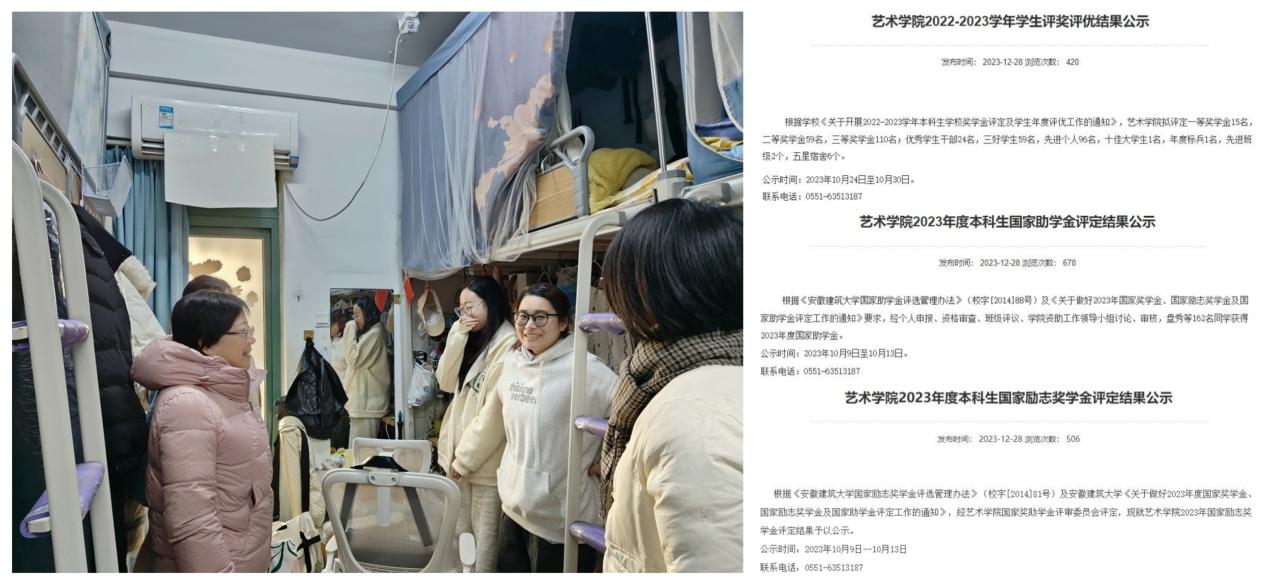 资助育人扎实精准。学院紧紧围绕立德树人根本任务,不断加强精准资助,大力推进资助育人,加快推动学生资助工作高质量发展,“奖、助、贷、勤、补、免”六位一体的学生资助工作体系从入学到毕业无缝衔接,切实保证学生“应补尽补”“应助尽助”。本年度,共评定省级、校级优秀毕业生30人,国家奖学金2人、国家励志奖学金27人、国家助学金162人、校奖学金287人、优秀学生干部27名、三好学生65名、先进个人96名、十佳大学生1名,年度标兵1名,先进班级2个,五星宿舍6个。学院书记深入宿舍暖心走访,为学生送去温暖和关怀。