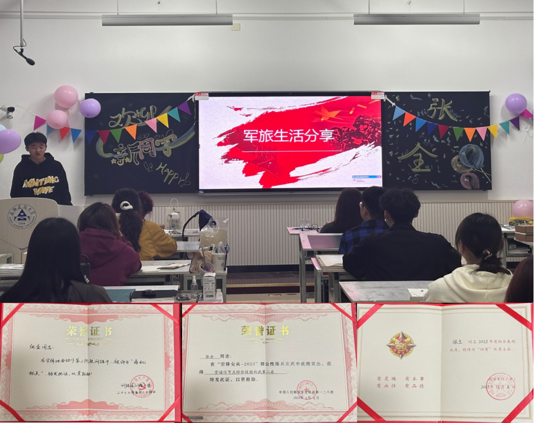 张全同学分享了两年军旅生涯中通过勤学苦练掌握专业技能的励志经历,并表达了对军旅生活的怀念与感谢,动情的话语感染着在场每一位学生。自由提问环节中,同学们踊跃提问,表达了对军旅生活的向往和退役大学生的敬佩。