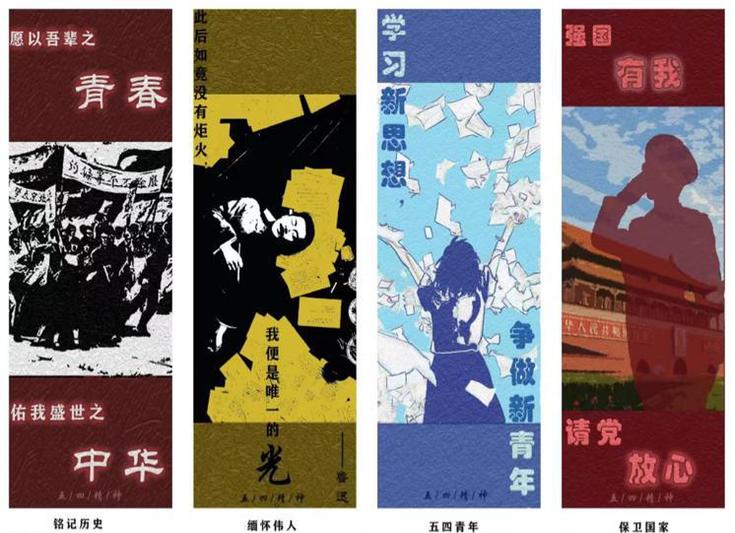 22视觉传达专业1班王可心设计的书签,从“五四运动”代表人物出发,旨在鼓舞广大青年紧跟先贤步伐,树立远大理想,不负韶华,不负时代,以奋斗姿态激扬青春、实现梦想。