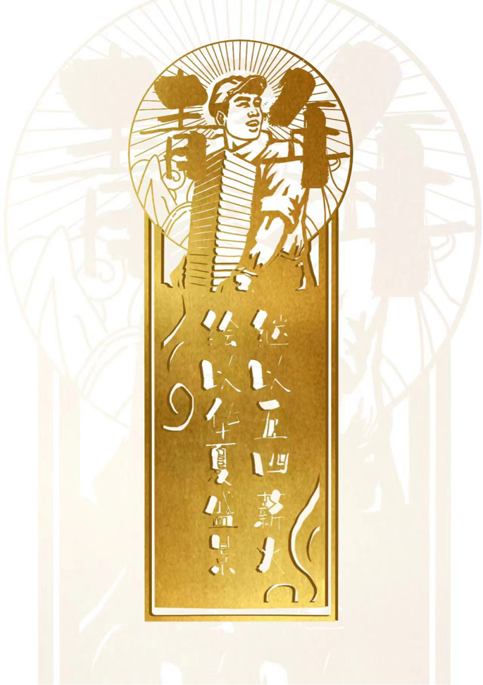 22视觉传达专业1班黄康采用非遗纸雕的工艺技法,以红色为主色调,展现出热血沸腾、气势磅礴的视觉效果,创造出独具特色的“五四”印记。