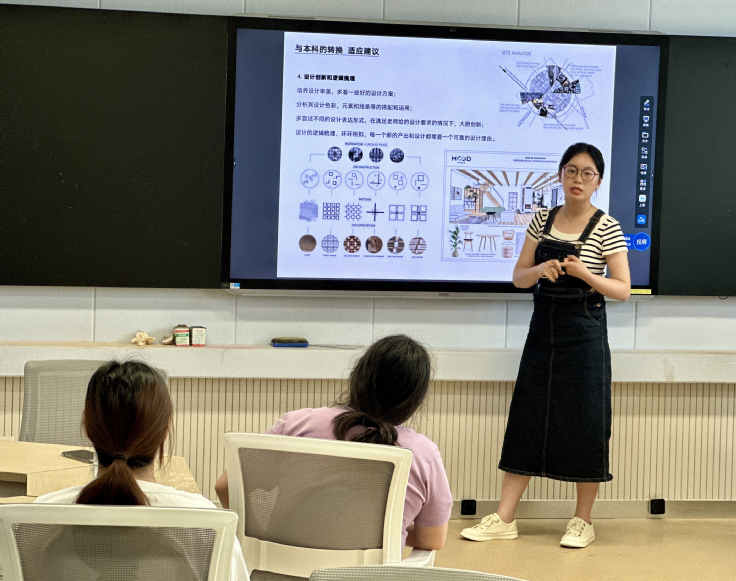 本网讯 为进一步拓宽环境设计(中外合作)项目学生的国际视野,增进同学们对留学的认识,发挥优秀校友的榜样作用,艺术学院于近日举办了主题为“跨海筑梦·设计未来”的校友留学经验分享会。本次活动邀请了学院环境设计(中外合作)项目2023届毕业生董淇硕与齐天乐,请她们回校分享跨国追梦的留学经历。中外合作办学项目协调员雷媛老师主持了活动,中外合作项目的30多名在读学生参加了分享会。