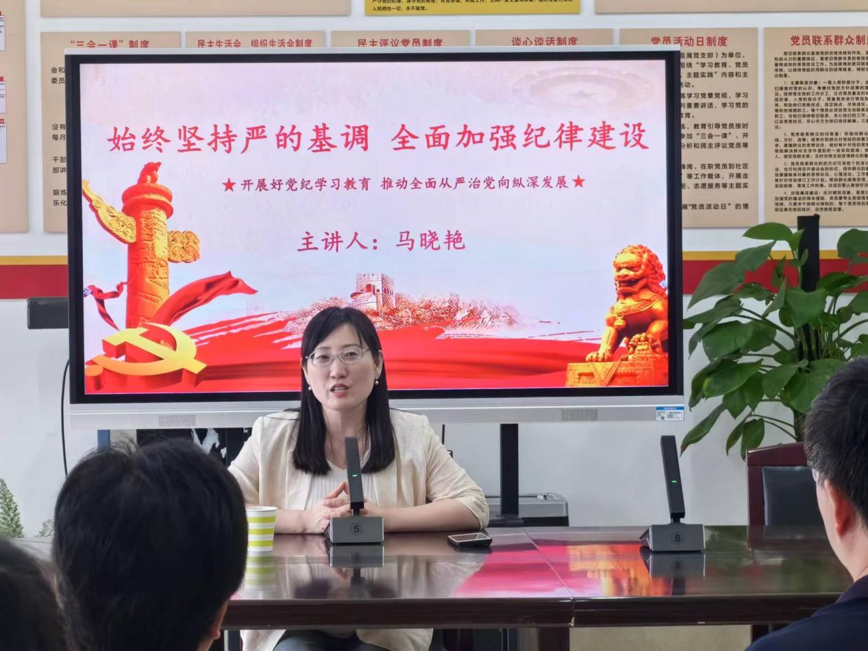马晓艳围绕“全面从严治党,开展党纪学习教育的重要性”“强化管党治党,用党纪党规校正思想和意识”“加强纪律建设,要结合新时代特点与时俱进”三个主题,对新修订的《中国共产党纪律处分条例》重要条文进行辅导解读,报告主题鲜明、脉络清晰、内容丰富、案例详实,特别是典型案例极具警示意义,具有很强的指导性和针对性。