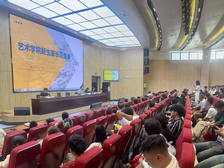 本网讯 9月5日下午,艺术学院在徽韵楼二楼报告厅召开2024级新生家长见面会。学院领导、辅导员及数百位新生家长齐聚一堂,共同开启了新生们艺术梦想的新篇章。