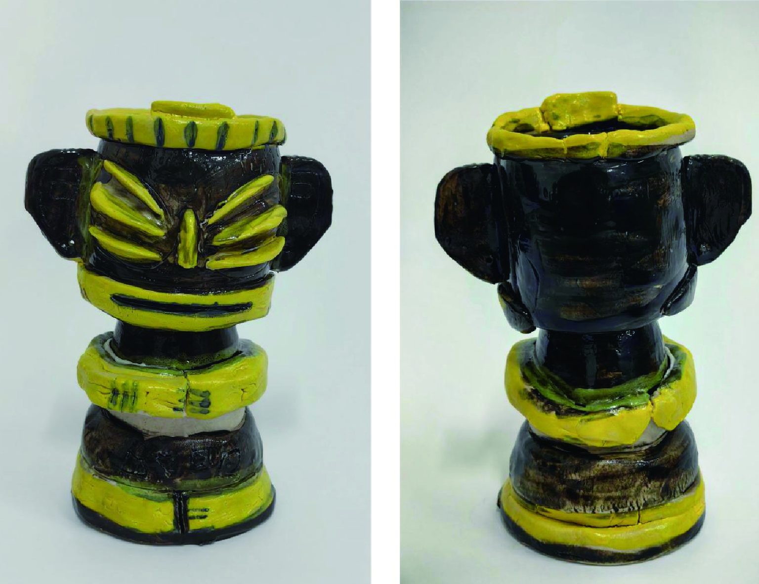 《三星堆笔筒》以三星堆文物为灵感,参照青铜人头像的造型,将多个几何形状通过创意手法组合在一起,打造出一款既实用又富有艺术感的学习用具,使用者不仅能感受历史的厚重感,还能在日常学习中体验文化的传承与创新。