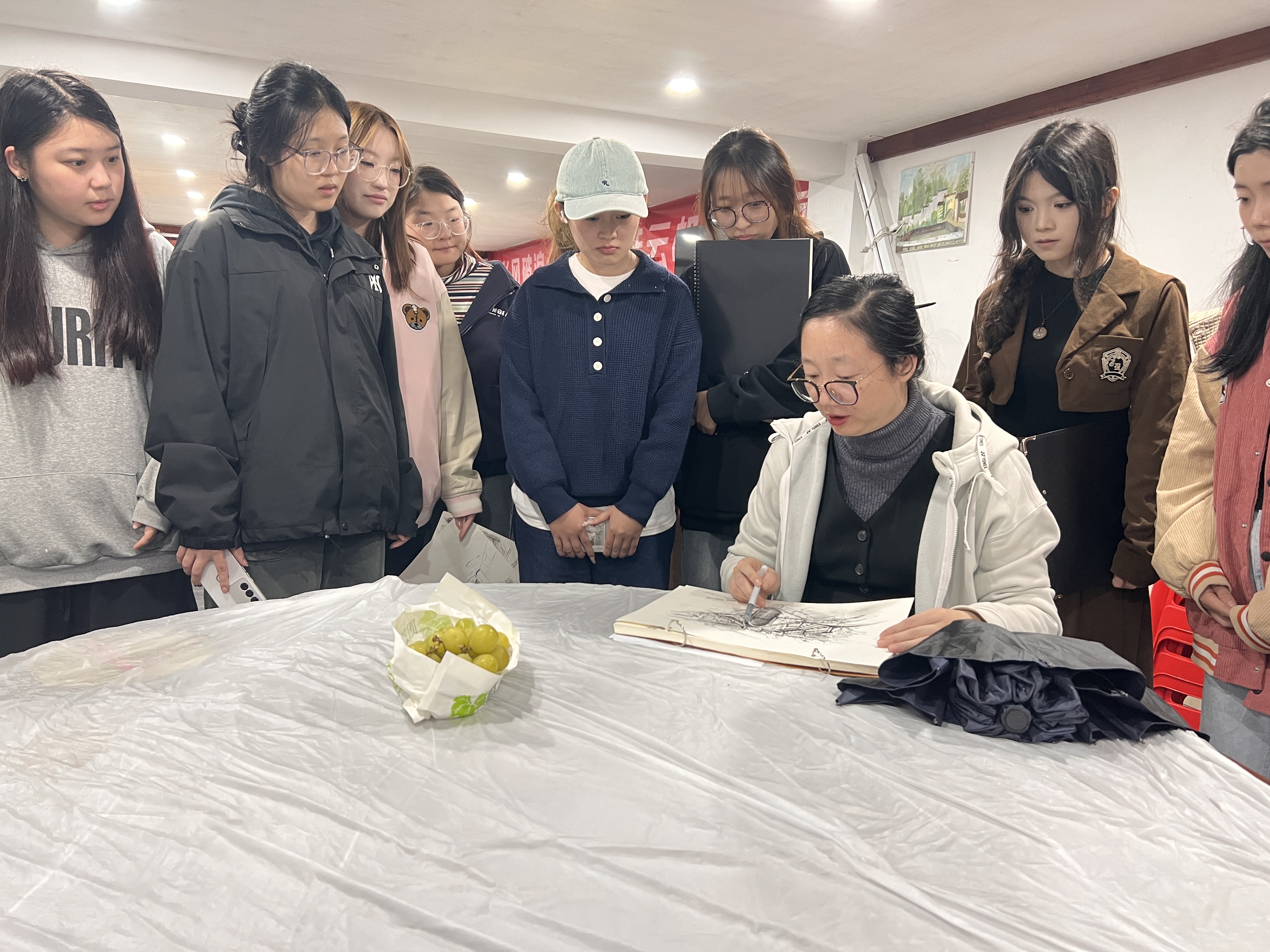在老师们的认真指导下,同学们在写生内容以及形式技巧上有了很大突破他们运用不同色调和笔触描绘皖南秀美青山绿水、勾画山区村落淳朴的风土人情,记录下师生互动的动人瞬间,寻找黑瓦白墙中的别样风情。