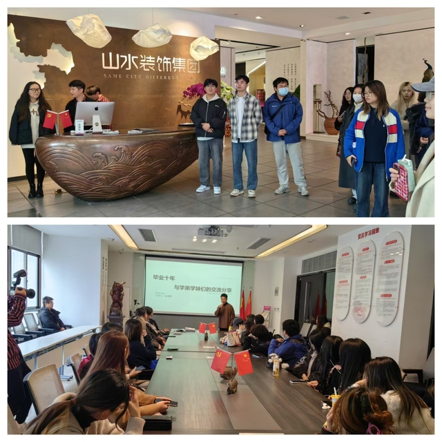 11月20日,师生前往山水装饰集团总部参观,人事部经理李燕平首先向同学们介绍了山水装饰的企业文化,接着带领大家参观了各类实景样板间、集合式展厅,最后环境设计专业14届毕业生、现任山水装饰设计部经理孙增辉学长为同学们作了精彩的报告,他从专业现状、个人发展历程、职业规划建议等各方面进行了真诚的分享,大家专心倾听,收获满满。