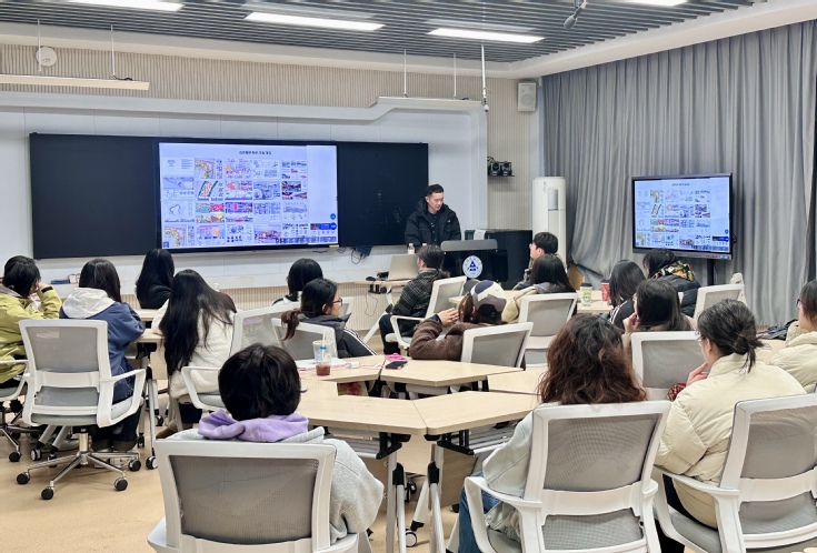 本网讯 为深化环境设计(中外合作)项目的国际化人才培养体系建设,依托优秀毕业生开展朋辈示范教育,助力在读学生科学规划留学路径,3月12日下午,艺术学院举办了主题为“探索与选择—与UCL学长对话”的留学经验分享会。本次活动邀请了2016级环境设计(中外合作)项目毕业生陈乾元校友进行经验分享,中外合作办学项目协调员雷媛老师主持活动,40多名学生参加分享会。