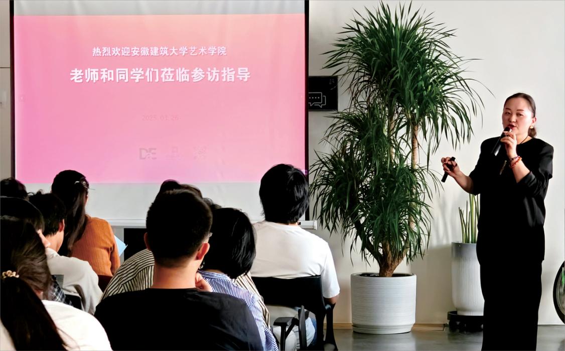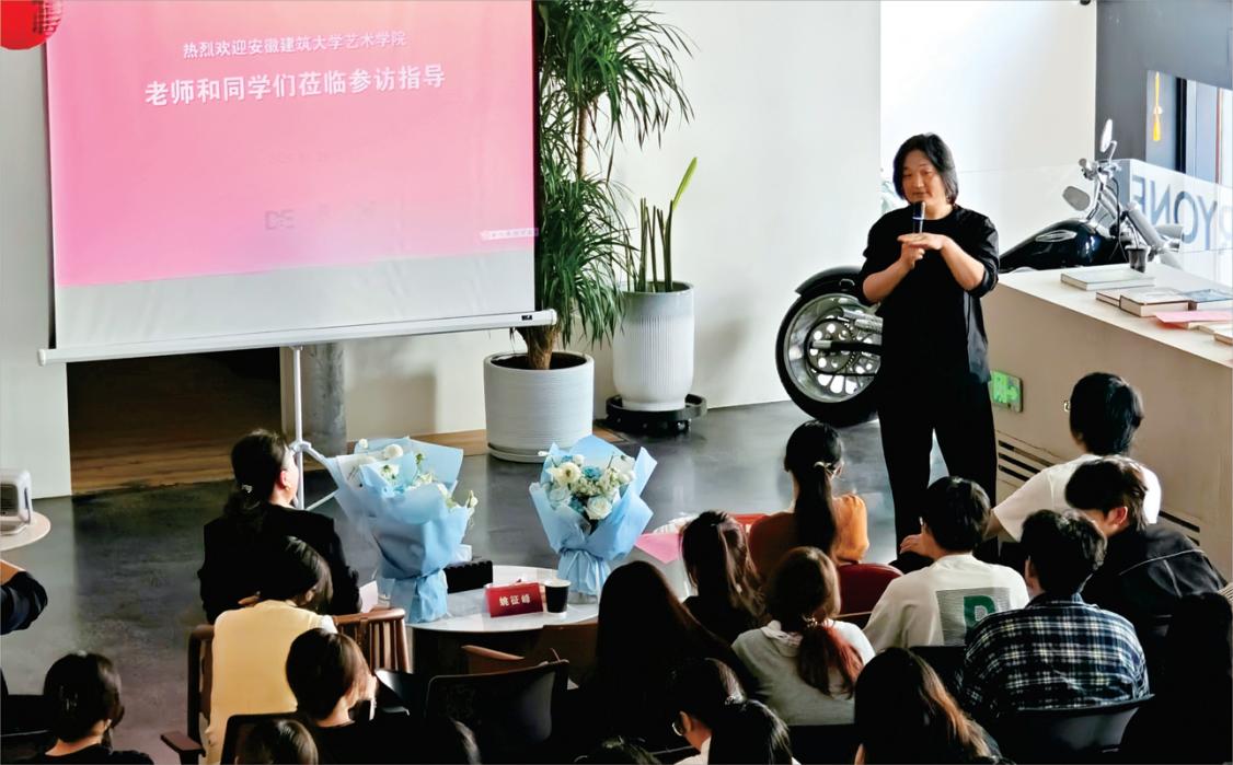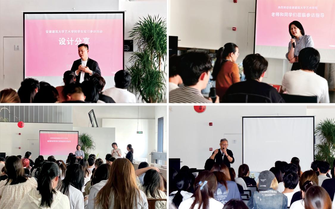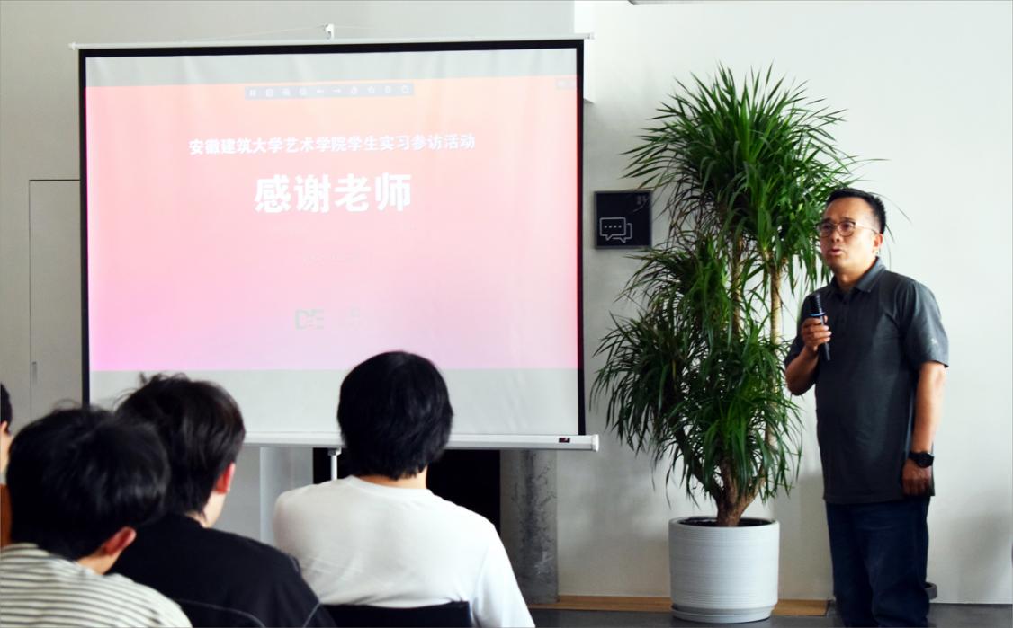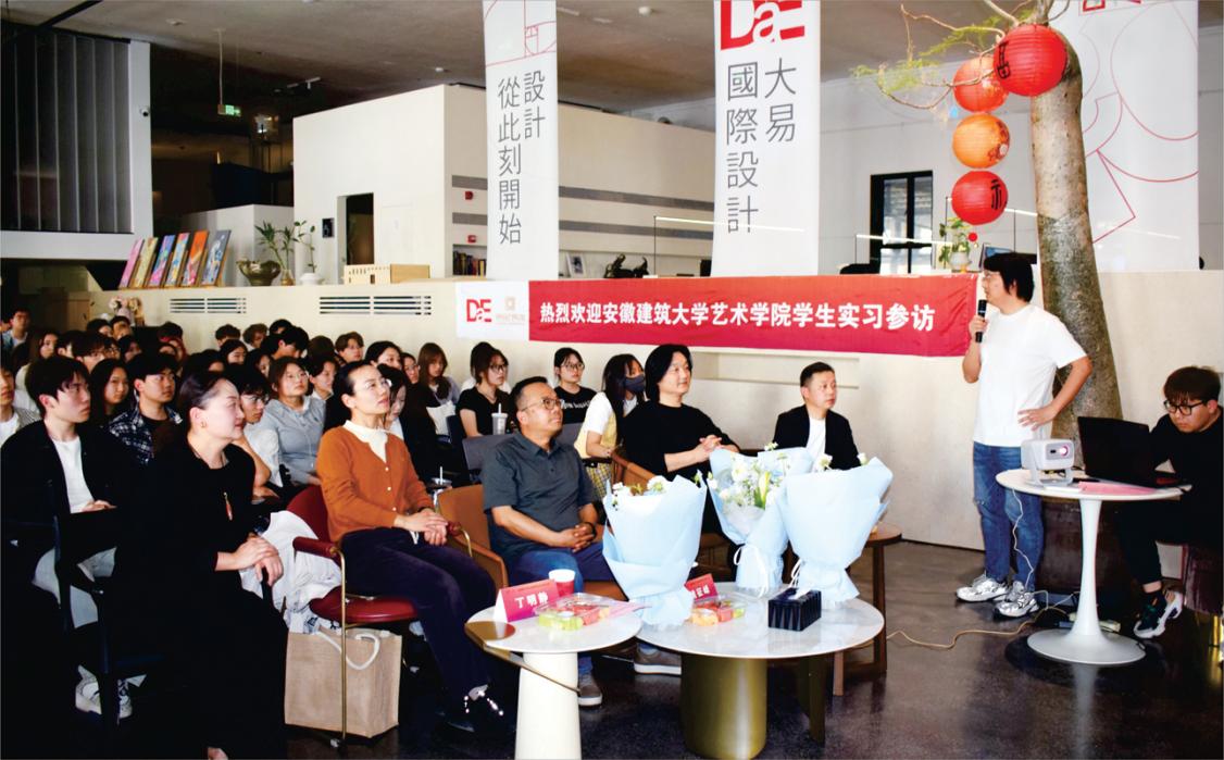 姚征峰老师介绍了本次带领设计专业学生到企业实习参访目的,旨在通过校企交流帮助学生了解当下建筑设计行业动态,拓展专业认识,强调“实践是设计的第二课堂”。刘薇结合建筑行业特点分享了自己从大学实习到成立公司的创业历程,建议同学们及早找到个人兴趣点和未来就业方向的重要性。大易设计总监张国辉通过案例分享来展示设计创意思路与施工落地细节,解说如何通过设计来提升项目价值。