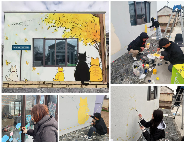 聚焦社会服务新维度。艺术学院学生党支部深入合肥市长丰县马郢村开展主题党日活动。师生党员以画笔为媒介,在村内开展生态主题墙绘创作,实施树木养护计划,并通过规整村史馆陈列布局,重塑乡村文化空间。从四季斑斓的墙面艺术到农耕记忆的视觉叙事,师生们将课堂延伸至田间地头,用画笔描绘田园乡景,以专业能力提升乡村公共空间品质。活动不仅美化了村容村貌,更搭建起服务社会的新桥梁,实现美育实践与乡村振兴的同频共振。