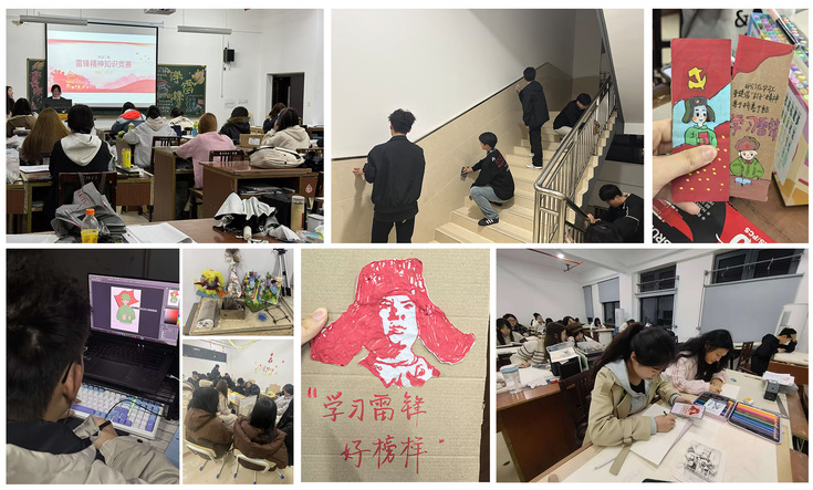 扎根服务实践根基。艺术学院团委组织各团支部于35日开展系列实践活动。志愿者们化身图书管家,在校图书馆完成书籍整理、书柜清洁及空间优化工作。同步开展的雷锋精神知识竞赛、雷锋形象IP设计大赛、“学雷锋”主题板报创作等活动,通过废旧材料艺术再生、文化符号青春化演绎等创新形式,使思政教育融入校园每个角落,以设计思维重构雷锋形象,用艺术语言续写奉献篇章,为校园文化注入鲜活生命力。