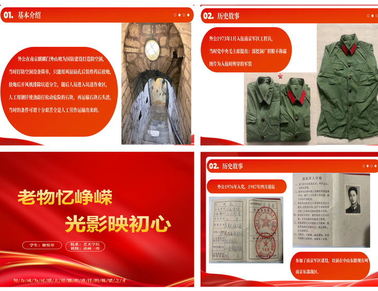 学院以“时光档案”电子展搭建历史对话桥梁,组织学生从家庭旧物中遴选珍贵物件,深挖背后时代故事。一套褪色军装见证热血岁月,一枚斑驳银元诉说一代人的坚守。同学们运用技术重现泛黄家书的岁月褶皱,通过动态影像修复锈迹勋章的光辉记忆。在数字技术与红色记忆的交织中,革命精神借由电子档案焕发新生,散落的文化记忆被重新编织成贯通时空的精神纽带。