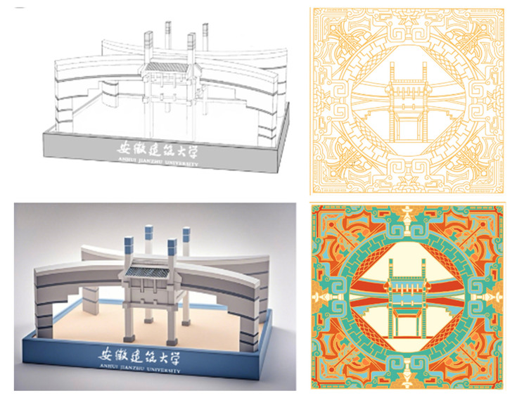 “匠心筑徽韵”文创设计活动,从徽弘门、图书馆等校园标志建筑中提炼出建筑元素并转化为视觉形象符号。设计团队巧妙融合云纹、回纹等传统纹饰,通过模块化分层结构打造校门景观文创灯,实现功能性照明与文化符号的深度融合。剪纸创作则聚焦易海兰亭,以非遗镌刻青春记忆,结合现代校园元素展现青春风采。传统技法与现代元素的碰撞,既彰显文化传承的源远流长,又展现创新发展的时代活力。
