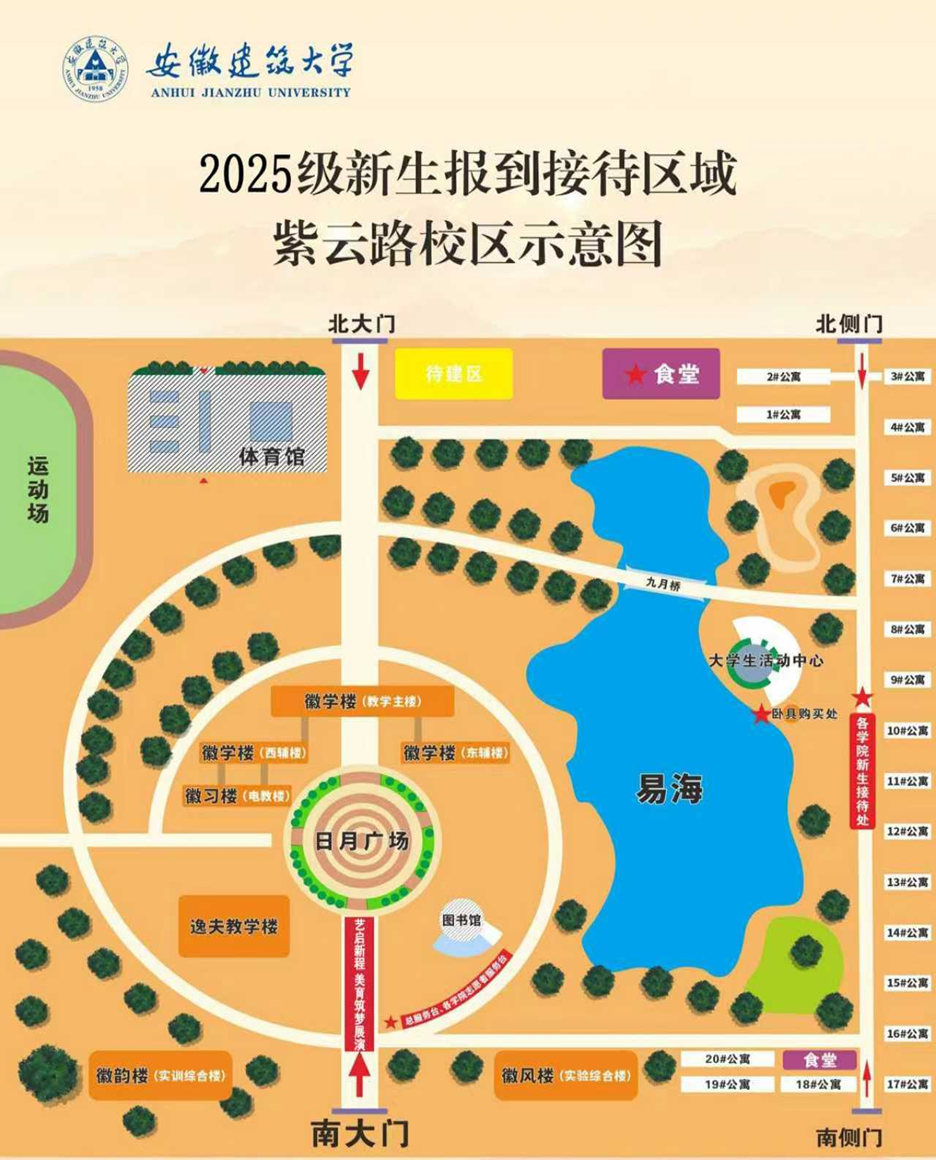 早七点左右即可入校准备报到,建议及早出发,避免排长队,紫云路校区徽弘门(别称南大门/南2门)、金寨路校区西大门全天24小时开放。新生请在《2025级新生入学指南》(随通知书寄发)中扫描“安全须知”二维码,查看“新生人像自主上传采集”流程,提前完成采集上传,入校时即可自行刷脸进入校园(各校区各校门均可),家长可陪同入校,均不需在线上预约。