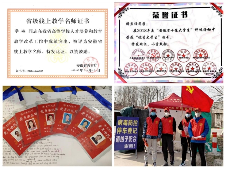 学院党委加强党员队伍建设,打造干事创业先锋模范,在教学科研、服务师生、服务社会等方面发挥着先锋模范作用,支部战斗堡垒作用逐步彰显。一是率先垂范立标杆。疫情期间,教师党员李璐深入研究线上教学,建立完善《线性代数》网络课程体系,获得安徽省“线上教学名师”、“卓越教坛新秀”、校“优秀共产党员”荣誉称号;积极参加教学比赛,先后获得《高等数学》教学创新比赛国家级二等奖,省级特等奖等。近年来,刘华勇等6名教师党员获得安徽省数学建模优秀教师,严飞等10名教师党员获得省级“教坛新秀”。学生党员潘应浩专业知识扎实、创新创业能力强,先后获得“2019年度安徽省大学生年度人物”、安徽省“优秀大学生”、安徽省“创新创业好青年提名奖”和“勤学上进好青年提名奖”等荣誉称号。二是挂牌上岗亮身份。学生党支部在班级、宿舍中建立“党员示范岗”“党员之家”,挂牌上岗,亮出身份,以身作则,接受监督。把工作责任落实到每栋宿舍、每个楼层,把服务面扩大到广大学生当中,在岗位上树立党员良好形象,在师生中展现党员先锋模范作用。三是服务师生勇争先。组织教师党员下沉学生当中,开展考研、考博、学业、就业、创新创业辅导;学生党员争当“朋辈导师”,发挥“传、帮、带”作用,与学业困难学生手拉手,成为学习“合伙人”,定期在专业学习、创新创业、文化体育等方面开展“一对一”学业帮扶;师生党员积极投身志愿服务活动,在毕业生离校、新生报到、高考网评、疫情防控等社会服务工作中展现榜样风采。