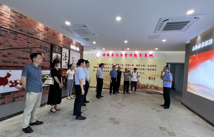 基地工作人员依次从一楼序厅、二楼安徽监狱历史文化展廊、三楼安徽省法治宣传教育长廊为大家进行了认真的讲解。安徽监狱历史文化展廊可以近距离地感受到安徽监狱人扎根奉献、薪火相传、点亮心灯等伟大历程和安徽监狱筚路蓝缕、励精图治、浴火重生的历史画卷。安徽省法治宣传教育长廊集法治宣传教育、法治文化传播、法治历史展示和法治生活体验于一体,以美好安徽·法治同行为主题,设计理念和构思精心独特,是全国首个省级法治宣传教育馆、展示馆、体验馆。其中包括宪法要义、习近平法治思想、民法典、盛世要法、普法历程、多功能展厅。