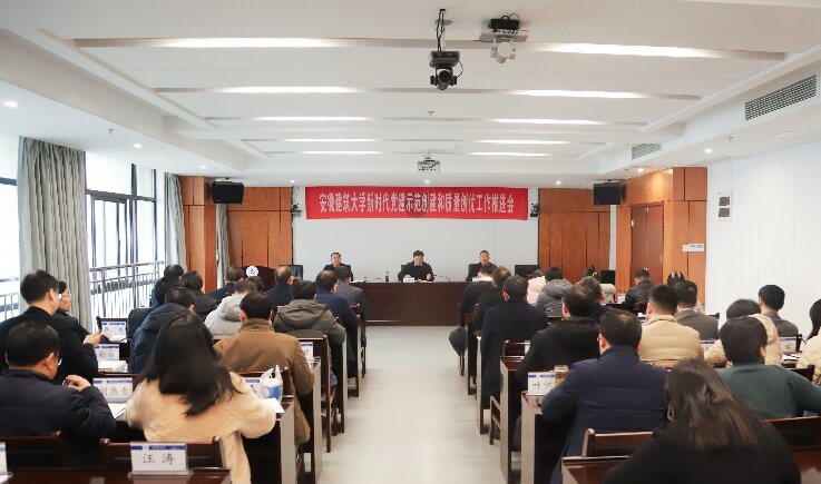 本网讯  1月17日,学校在南区徽风楼21楼第一会议室召开新时代党建示范创建和质量创优工作推进会。校领导黄显怀、闵杰、蔡国军出席大会,学校党建工作领导小组成员单位主要负责人,各基层党委(党总支)书记、专(兼)职组织员,校级、省级及国家级“标杆院系”“样板支部”负责人,校级“双带头人”工作室负责人参加会议。校党委常委、副校长闵杰主持会议。