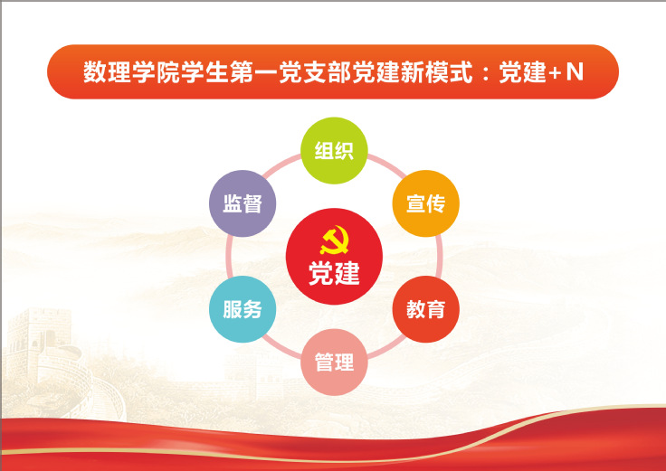 新时代高校党建示范创建和质量创优工作,是教育部全面落实习近平总书记关于加强高校党建工作的重要论述精神,深入贯彻《中国共产党普通高等学校基层组织工作条例》的重要举措,旨在增强高校基层党组织政治功能和组织功能,推进党建工作与学校事业发展深度融合,辐射带动高校党组织全面进步全面过硬,推动构建高质量高校党建工作体系,以高质量党建引领高等教育高质量发展。数理学院学生第一党支部将以此为契机,扎实做好国家级样板支部培育创建工作。一是加强组织建设,进一步探索完善“1+N”学生党建新模式。积极构建党建+互联网、党建+心理等工作模式,拓宽思想政治教育阵地,促进学生党员心理健康,强化党建育人功能。二是深化制度建设,构建完善的“三传四帮三带”高质量学生党建工作体系。努力形成成熟的“传精神、传文化、传知识”工作机制,打好“传”字牌;营造“帮发展、帮学习、帮学术、帮就业”的浓厚氛围,促进学生专业学习、科技竞赛、学术水平、考研就业等达到更高水平;完善“党员示范岗”制度,努力取得“带思想、带学习、带生活”的工作成效,形成思想健康、学习上进、生活和谐的良好局面。三是强化示范效应,努力形成特色鲜明的党建品牌。提高党建示范创建和质量创优工作效能,实施“组织生活质量提升计划”,丰富四星级党支部的创建成果,深入推进“小欧”先锋宣讲团走出校园、走进社区活动,结合学院特点,探索创立“红色数理”特色品牌。(作者:水天柱、赵妮;审稿:胡燕青、吴运传)